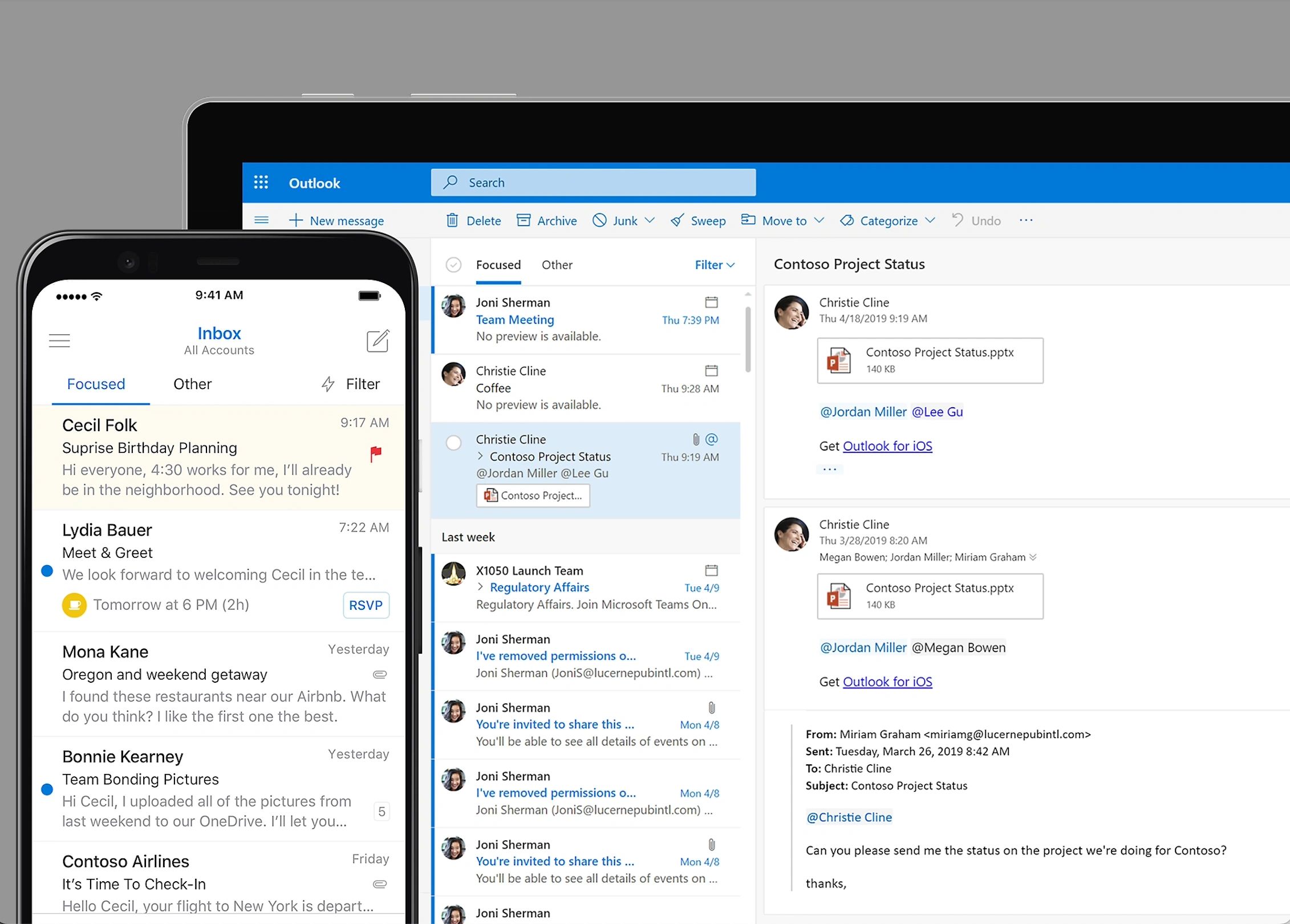 La integración con Outlook implica que los usuarios disfrutarán de una experiencia de correo completa y conocida con acceso sin conexión.